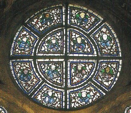 Stained glass The stained glass dates from the early 14th century. The rose window shows head and shoulders of distinguished Franciscans, including St Louis of Toulouse. The panels in the windows below show events in the life of St Anthony of Padua. |