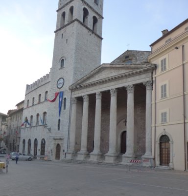 One of the most complete Roman buildings in Italy. It was much admired by Goethe on his visit, as described in his Italian Journey: 'There, before my eyes, stood that celebrated monument, the first complete monument from antiquity I had ever seen. It is not a grand temple as would be expected for such a small town, and yet is is so perfect, so well conceived, that it would fit anywhere'. History The building dates from the first century BC, and tradition has it that it was dedicated to Minerva, though Castor and Pollux are contenders. It was converted into a church perhaps as early as the seventh century; it was dedicated to San Donato. In 1212 it ceased to be a church and was used for secular purposes, including a prison. An image of it is included in the thirteenth century frescoes in the Upper church of San Francesco. The prison's barred windows can be seen in the fresco; the angels may well have existed in an early version of the church. |